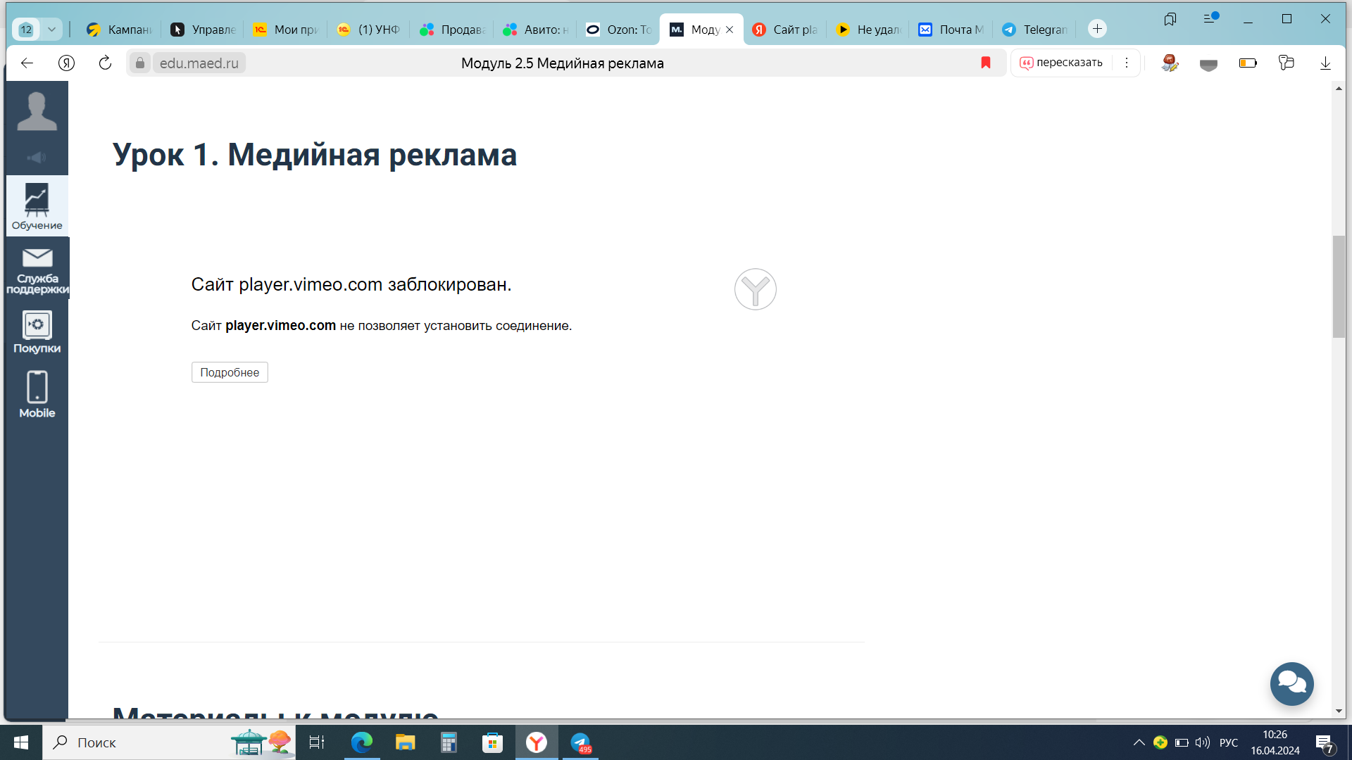 Проверьте, чтобы ваш антивирус не блокировал сайт vimeo. Можно попробовать добавить сайт в исключения антивируса. Это можно сделать по аналогии с сайтом getcourse.ru из данной инструкции https://getcourse.ru/blog/594877 .
