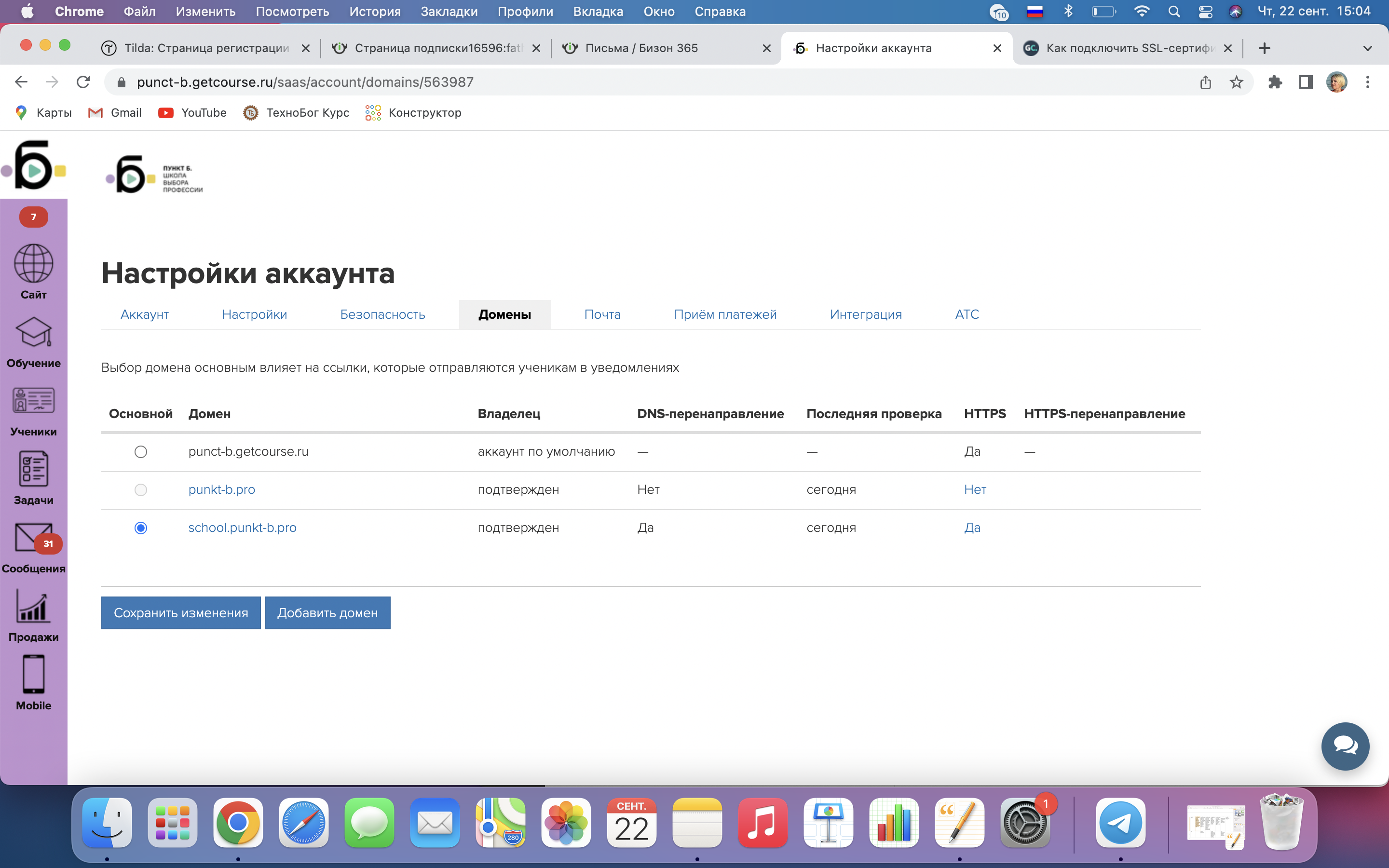 GetCourse предоставляет возможность подключить и использовать бесплатный SSL-сертификат от Let’s Encrypt. Этот международный центр сертификации предоставляет сертификаты бесплатно и полностью автоматизированно. Сертификатам Let’s Encrypt доверяют все браузеры и интернет-компании.