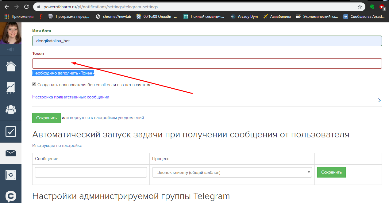- Вставьте скопированный из BotFather токен и нажмите «Добавить».