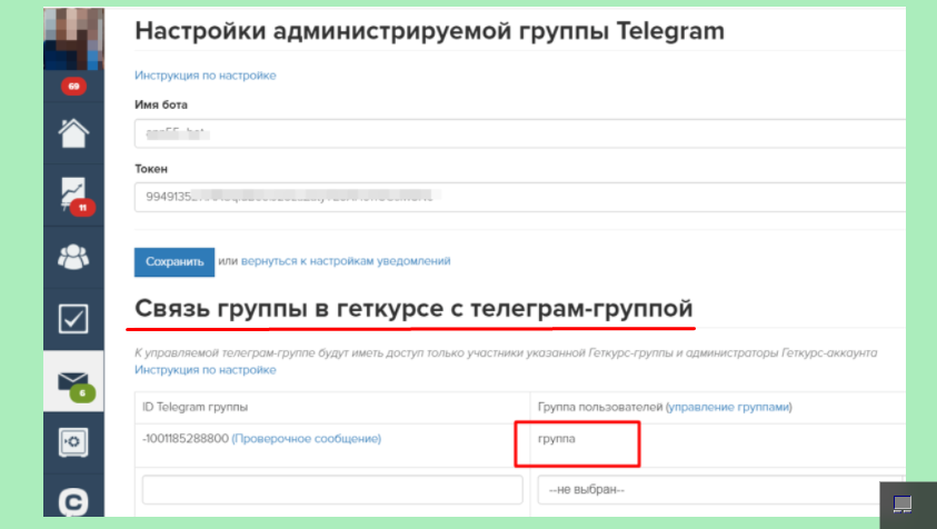 Теперь, когда к аккаунту подключен Telegram-бот для сообщений, появляется возможность добавить и настроить новый бот, который связывает группу в GetCourse и Telegram и позволяет автоматически контролировать доступ участников к этой группе. Подробности в статье → «Автоматический контроль доступа пользователей к группе в Telegram».