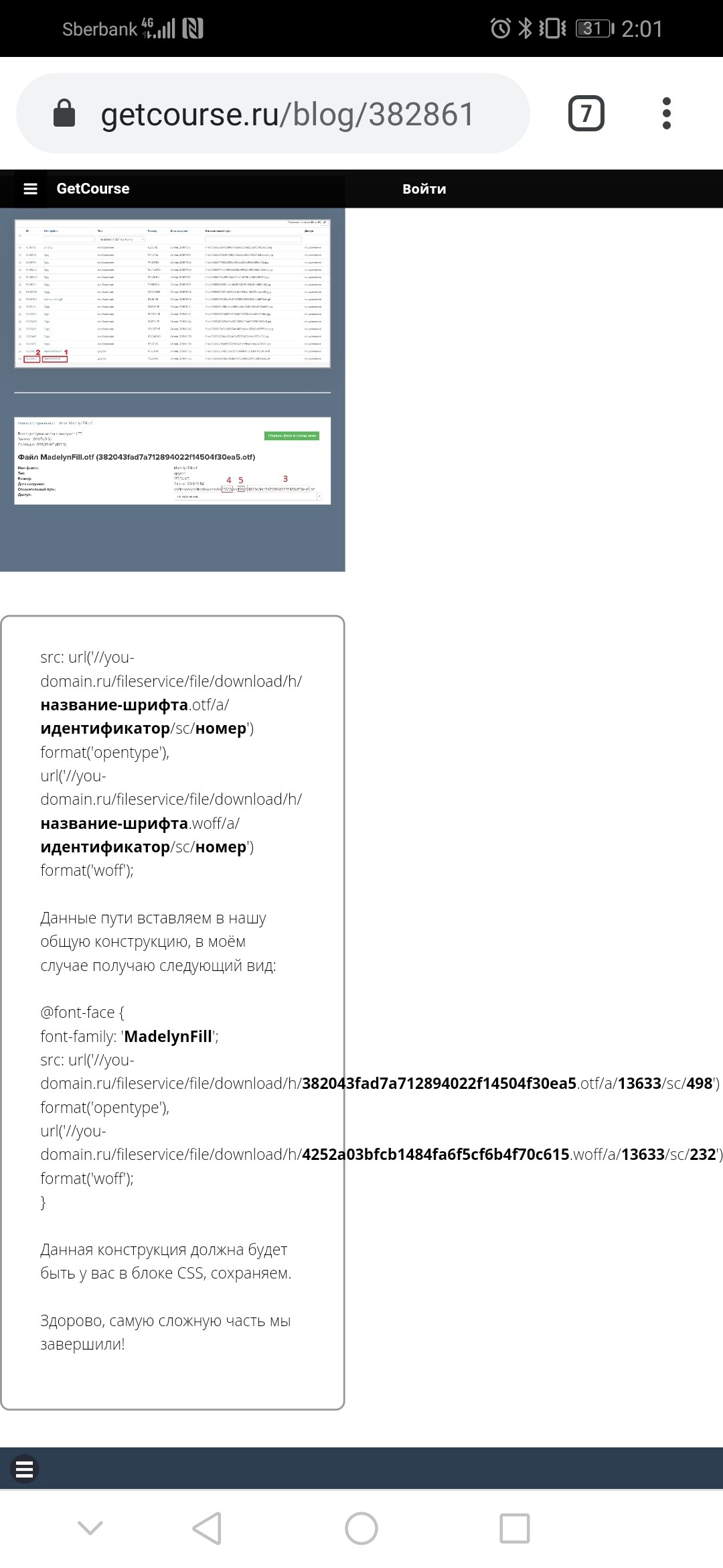 И второй, не менее важный вопрос. Зачем вы постоянно заставляете обычных пользователей так глубоко погружаться в код? Геткурс должен ЭКОНОМИТЬ время, а не растягивать его! Так сложно сделать автоматический подгрузчик шрифтов из файла на пк, который автоматически расставлял и прописывал все CSS на сайте? Это огромное время занимает у ваших программистов?