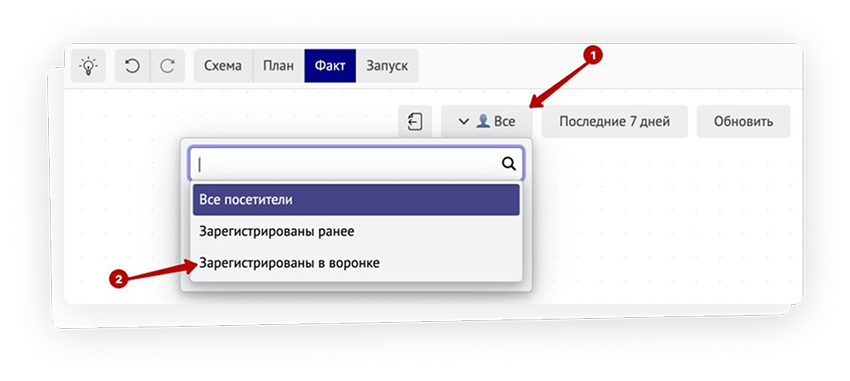 Благодаря тому, что в модуле «Воронки» есть возможность переключиться на режим «Факт» и посмотреть актуальную аналитику, можно было держать руку на пульсе. И оценивать, какой источник приводит больше участников, а какой — меньше.