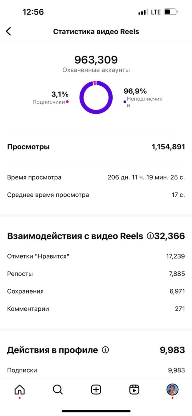 Пример рилса с экспертным контентом, который посмотрели 1,1+ млн раз